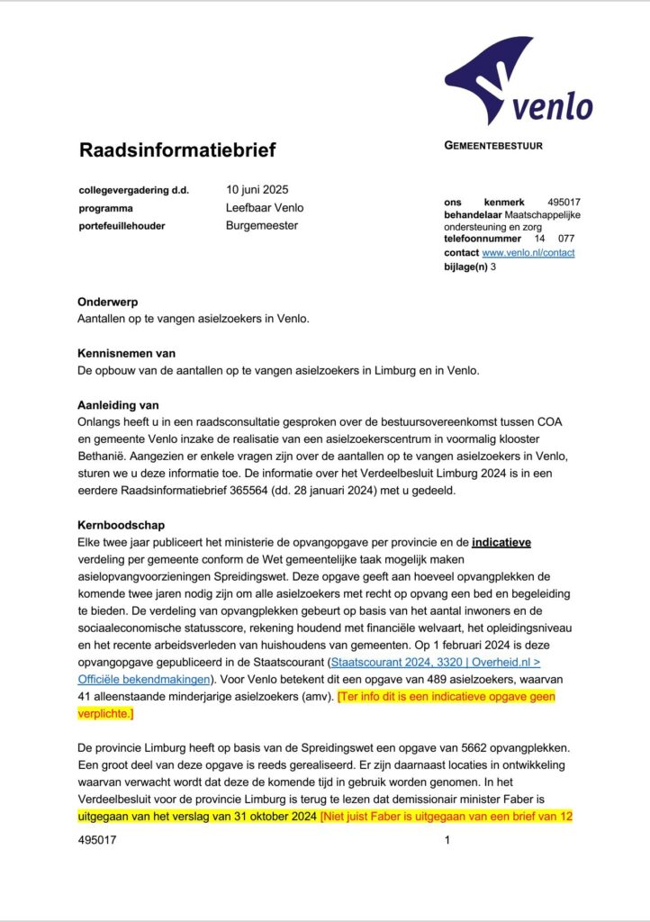 De opbouw van de aantallen op te vangen asielzoekers in Limburg en Venlo